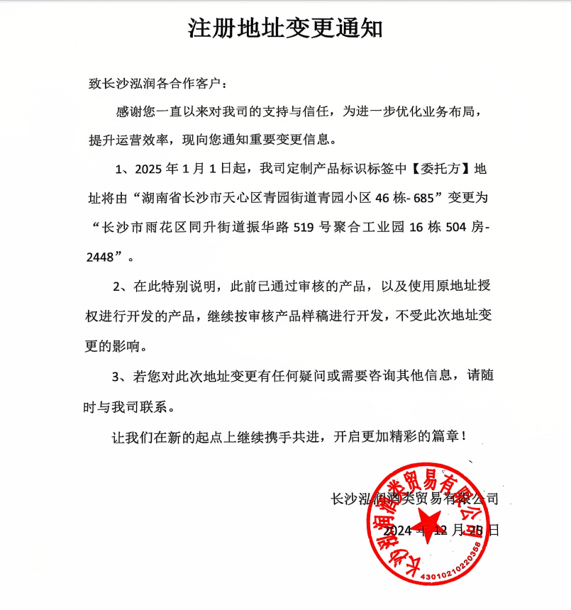 注册地址变更通知